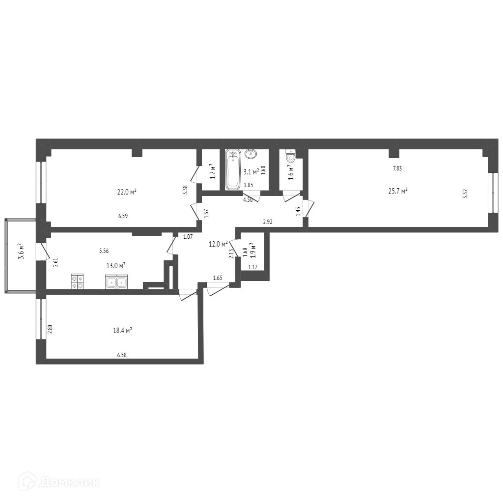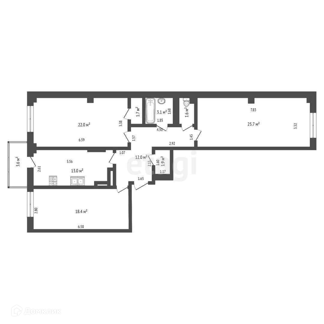 3-комнатная квартира, 99.4 м2, этаж 9 / 18, на продажу в Ростове-на-Дону