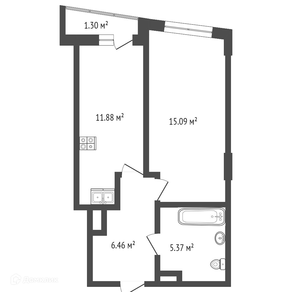 Общая площадь 38.8 м2