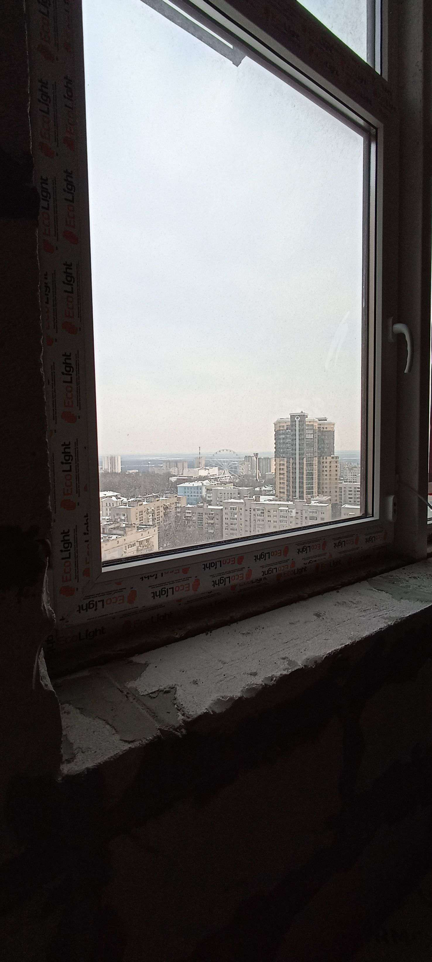 Вид из окна на город.