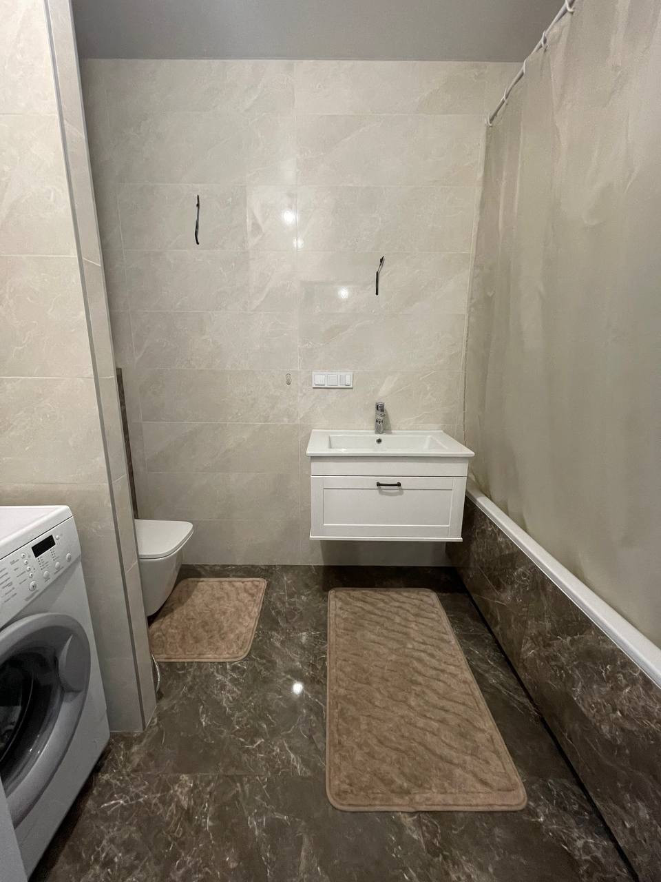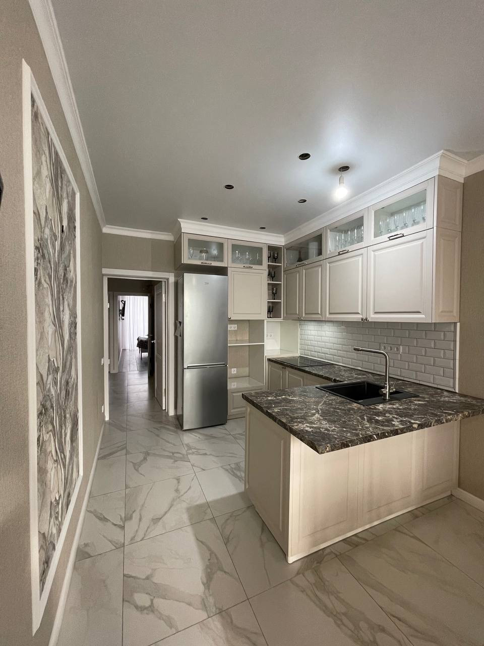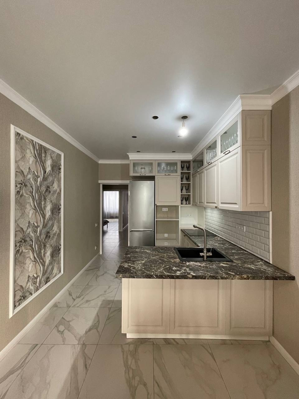 Ремонт по всей квартире выполнен из качественных материалов в одной тональности очень стильно.
