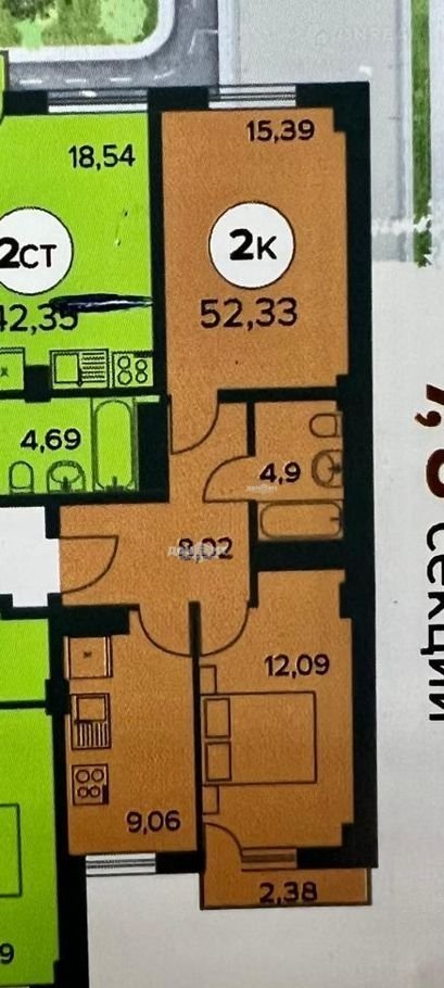 Общая площадь 55 м2
