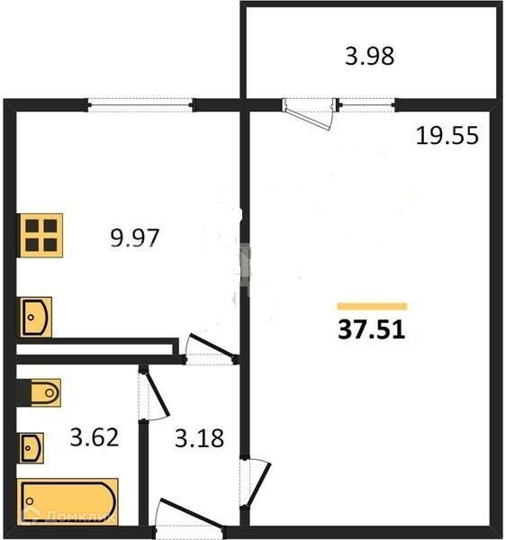 Общая площадь 37 м2