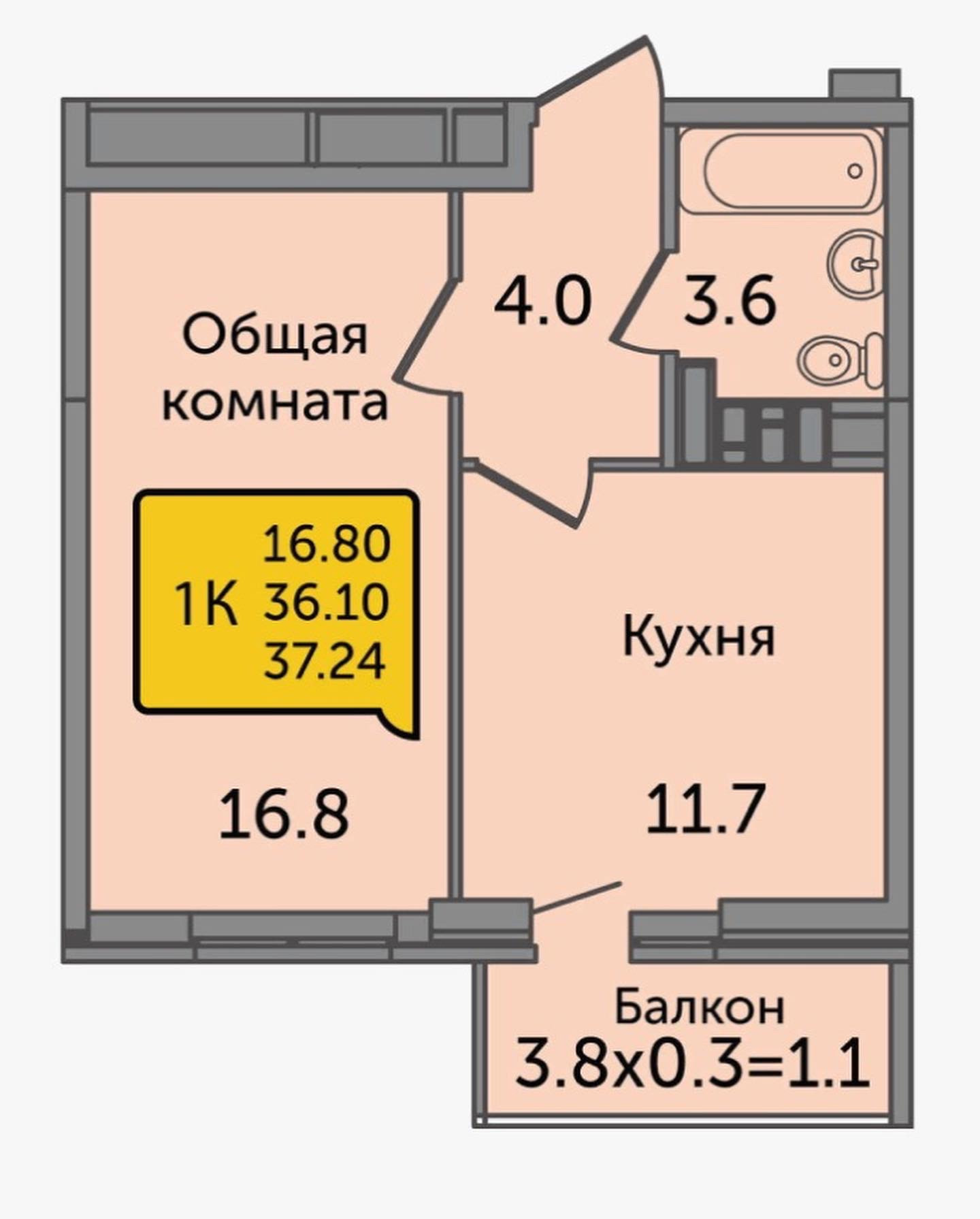 Общая площадь 38 м2