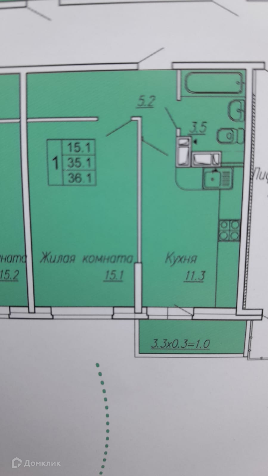 Общая площадь 36.1 м2