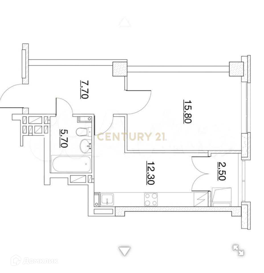 Общая площадь 44 м2
