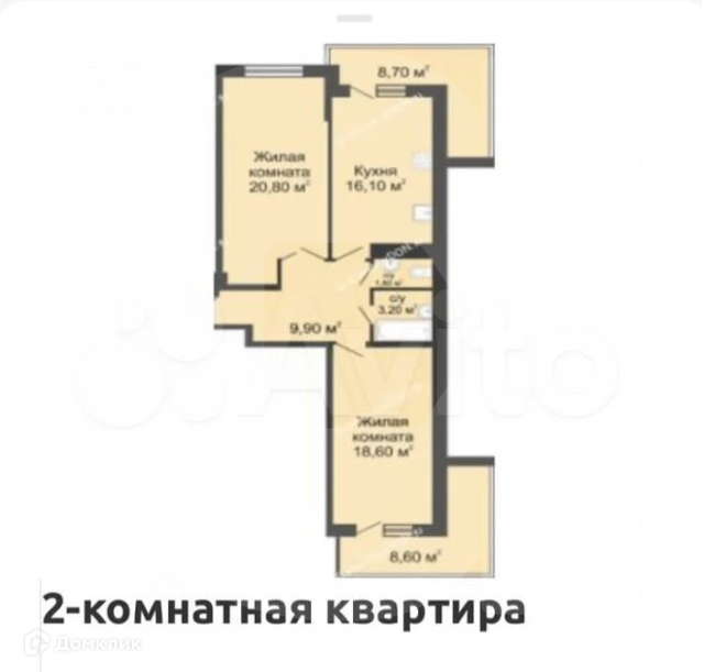 Количество комнат 2
