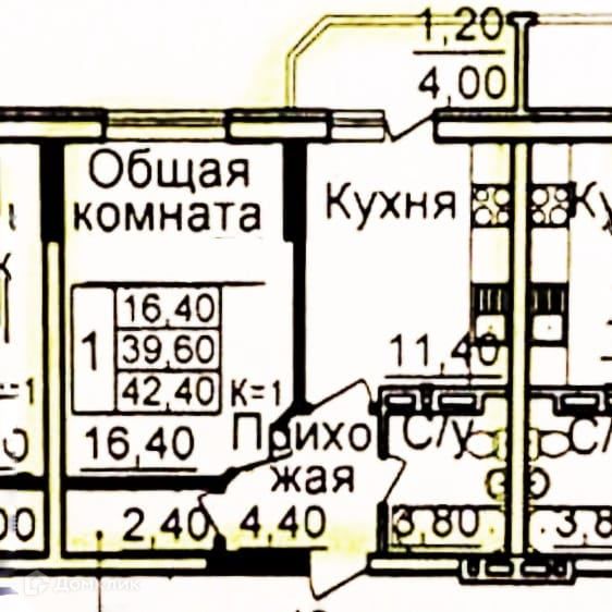 Общая площадь 43 м2