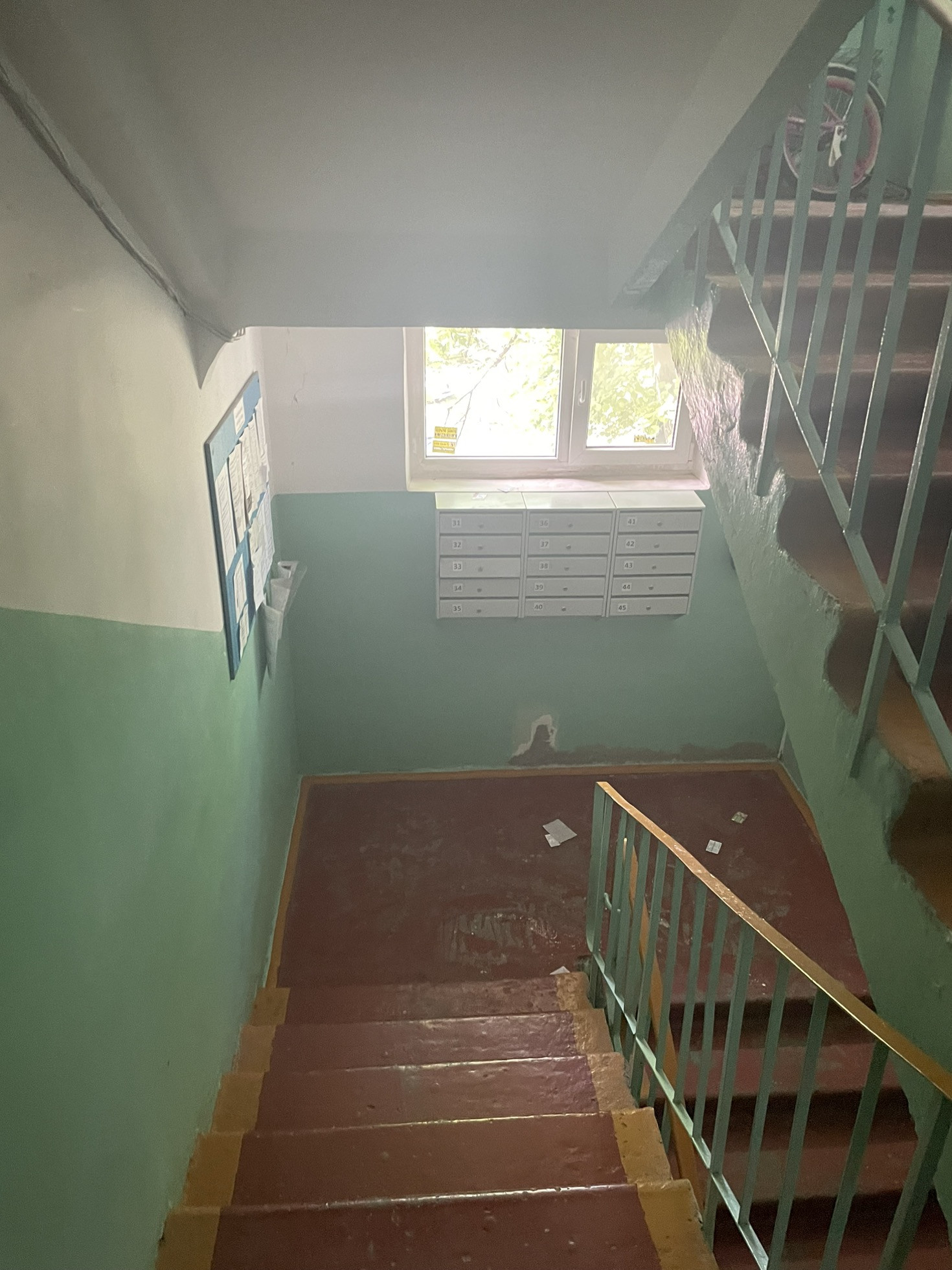 Чистый подъезд с ремонтом, благоустроенная придомовая территория с детской площадкой.