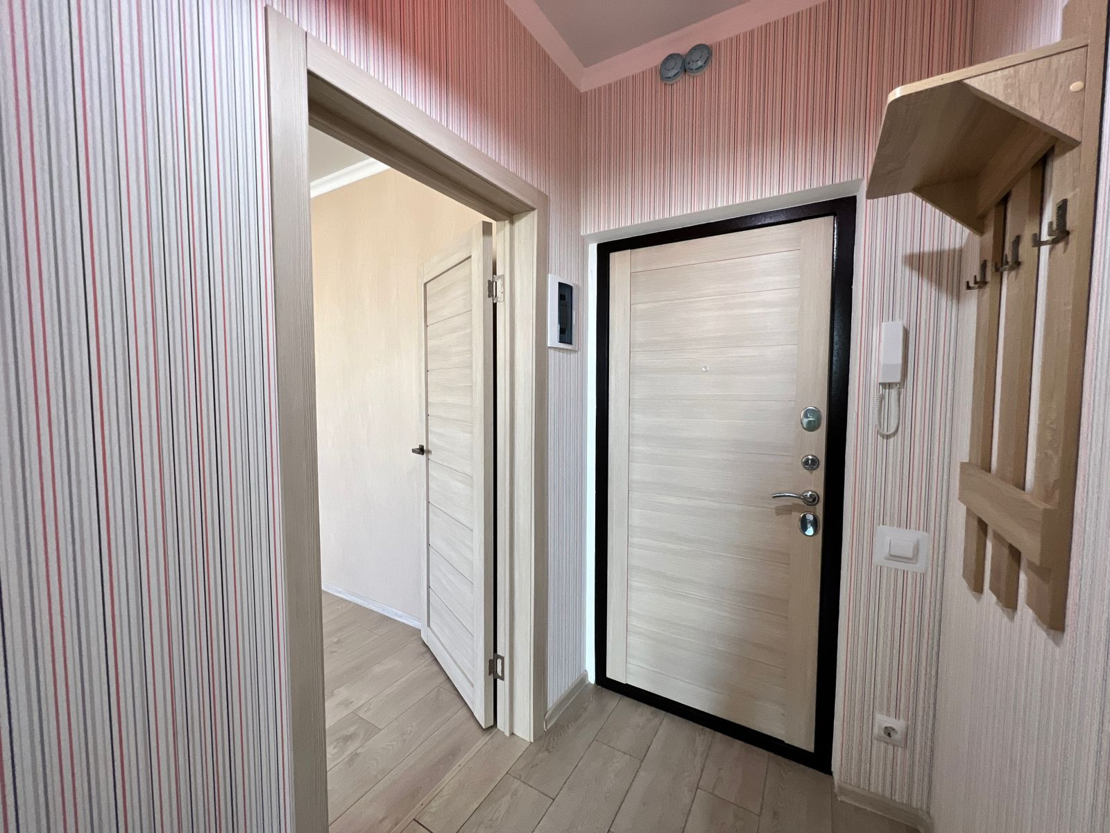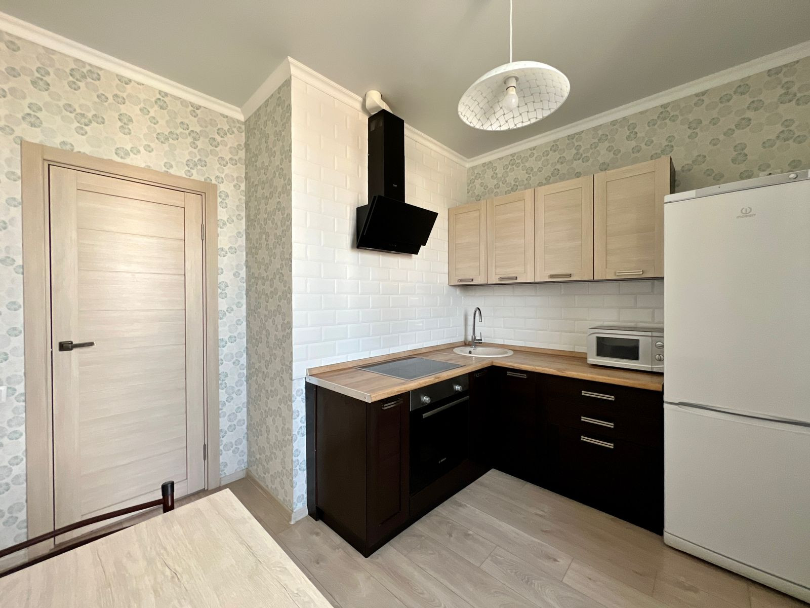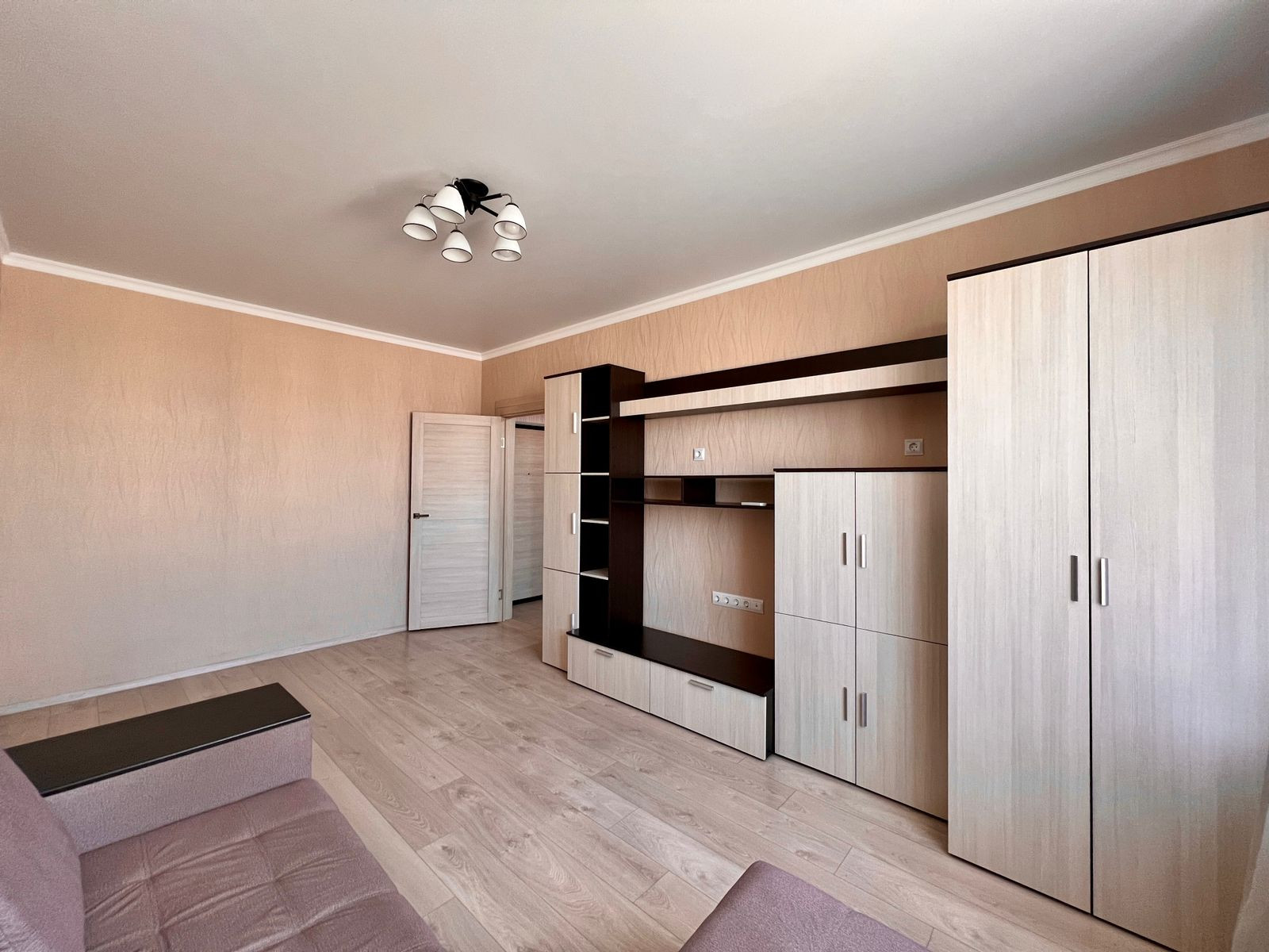 В квартире выполнен свежий ремонт, чистые современные обои, натяжной потолок, напольное покрытие - ламинат 33 класса с фаской, в мокрых зонах керамогранит. В сан. узле на стенах и на полу керамогранит. Квартира чистая и светлая.