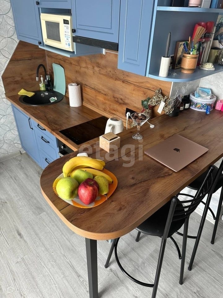 Керамогранит на полу, кухня из крашеных фасадов.