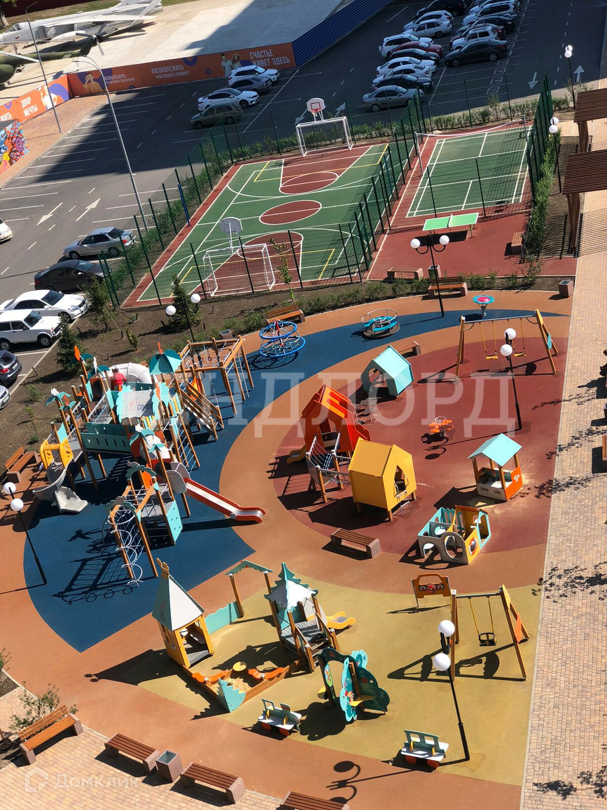 Обустроенные зоны отдыха, детские и спортивные площадки, широкие проезды. Собственная управляющая компания.