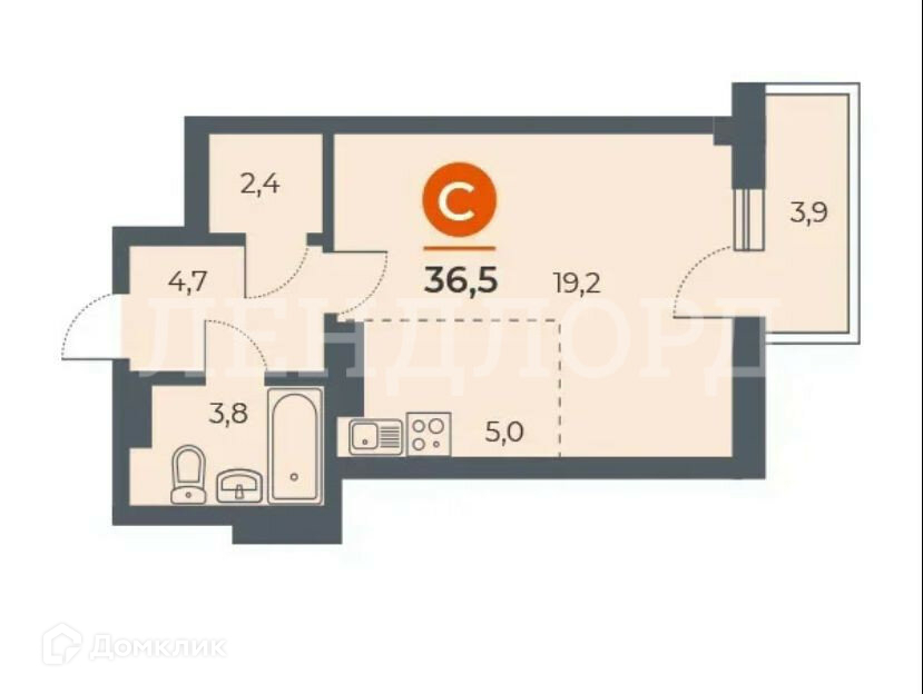 Общая площадь 36.48 м2
