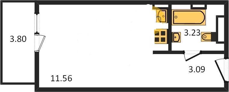 Жилая площадь 12.6 м2