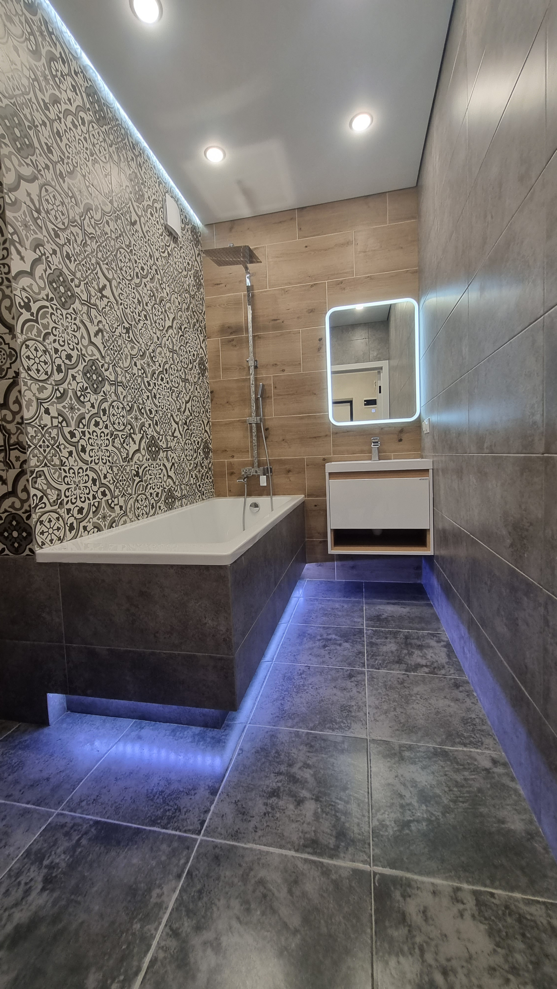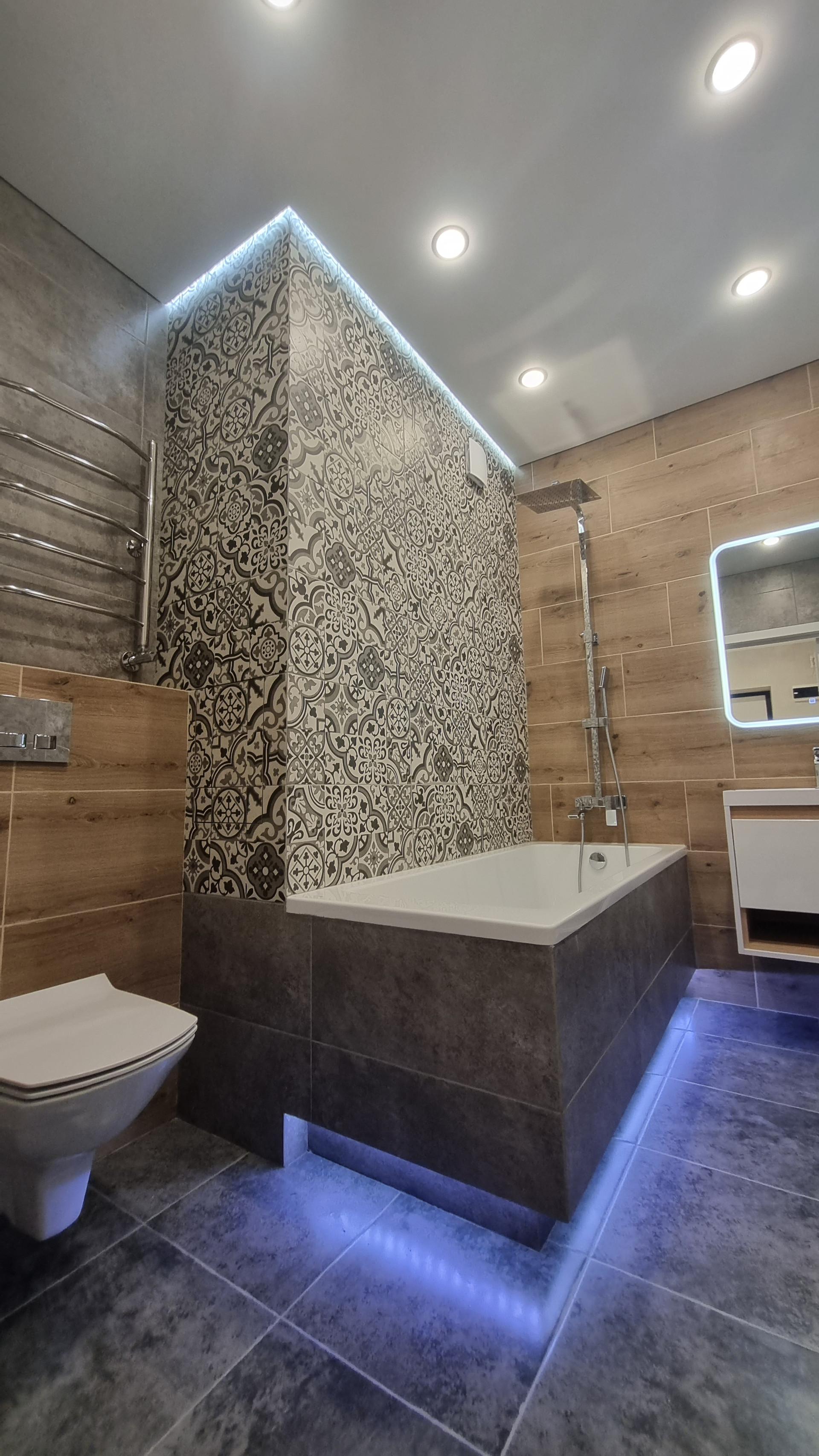 - дорогая эффектная плитка в ванной,