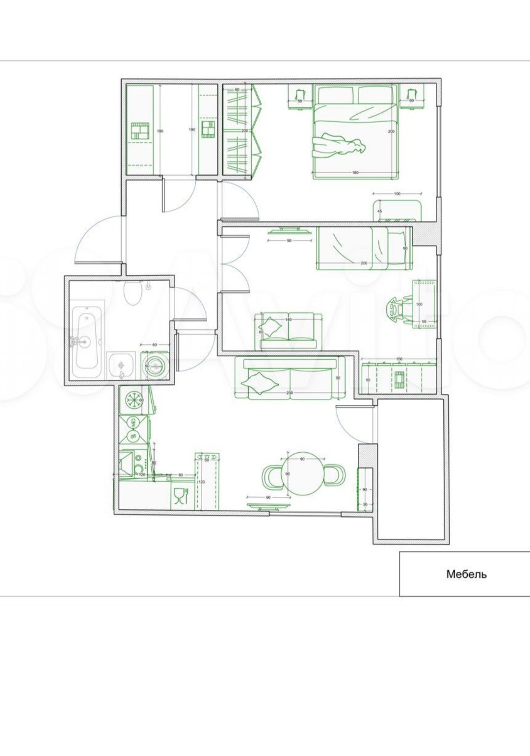 Общая площадь 66 м2