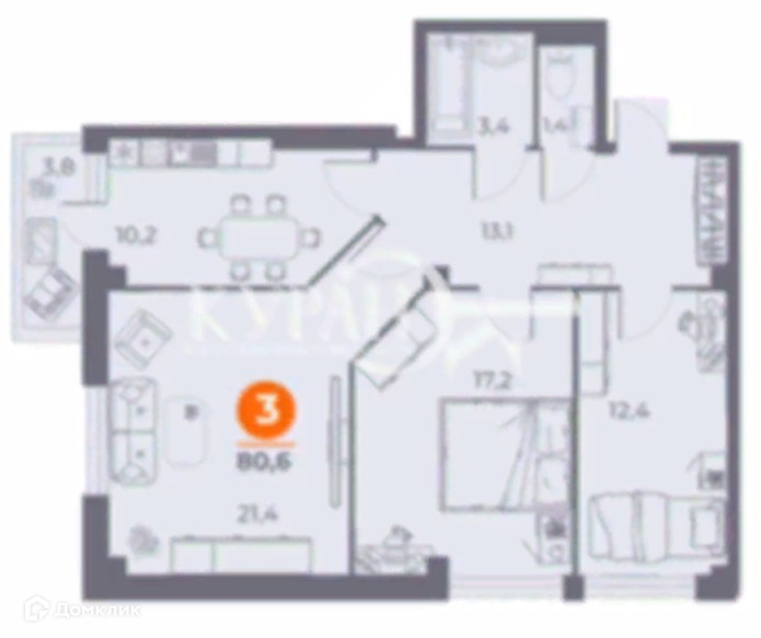 Количество комнат 3
