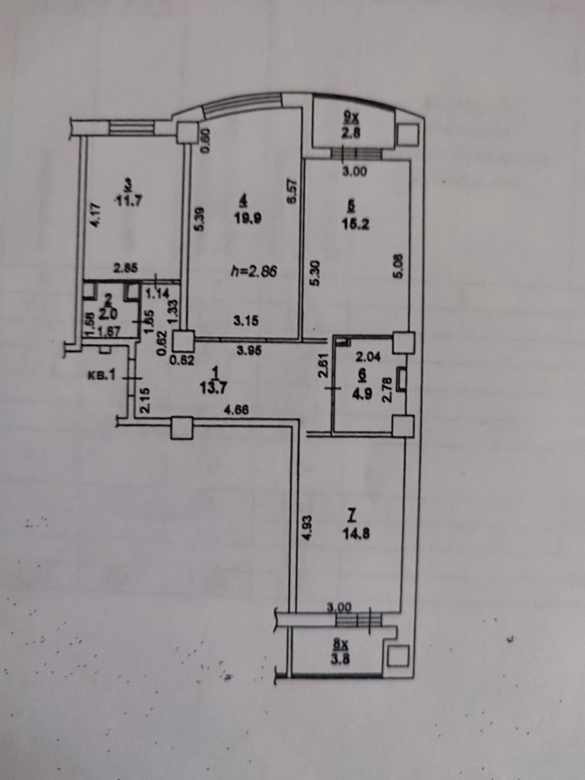 Высота потолков 2.9 м