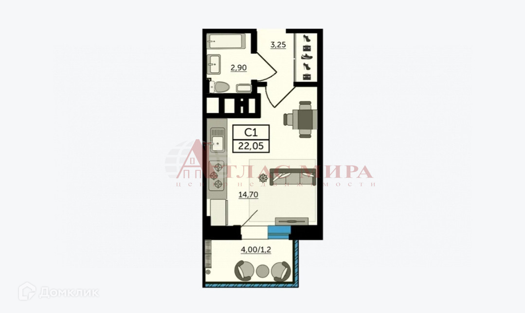 Общая площадь 22 м2