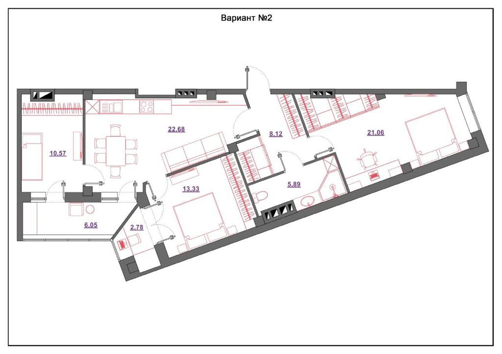 Жилая площадь 55 м2
