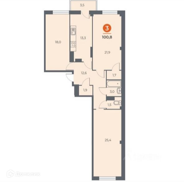 Количество комнат 3