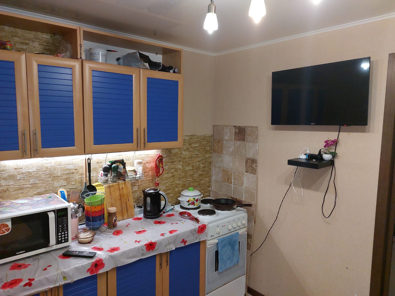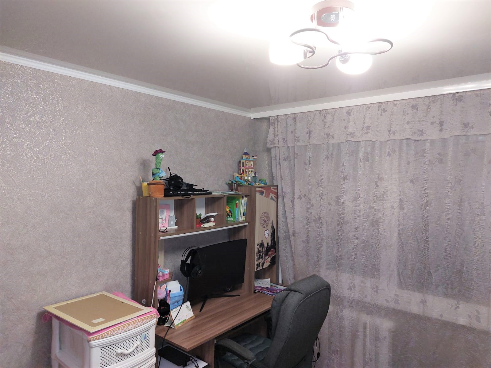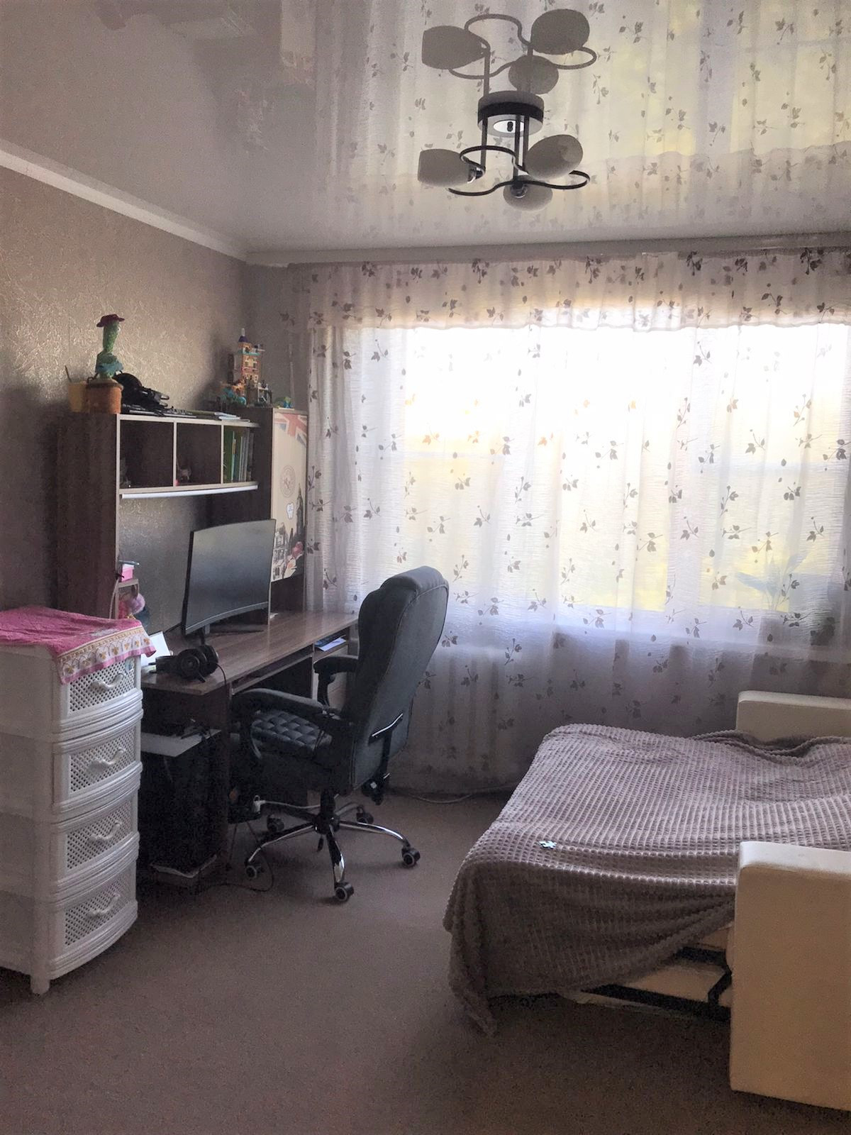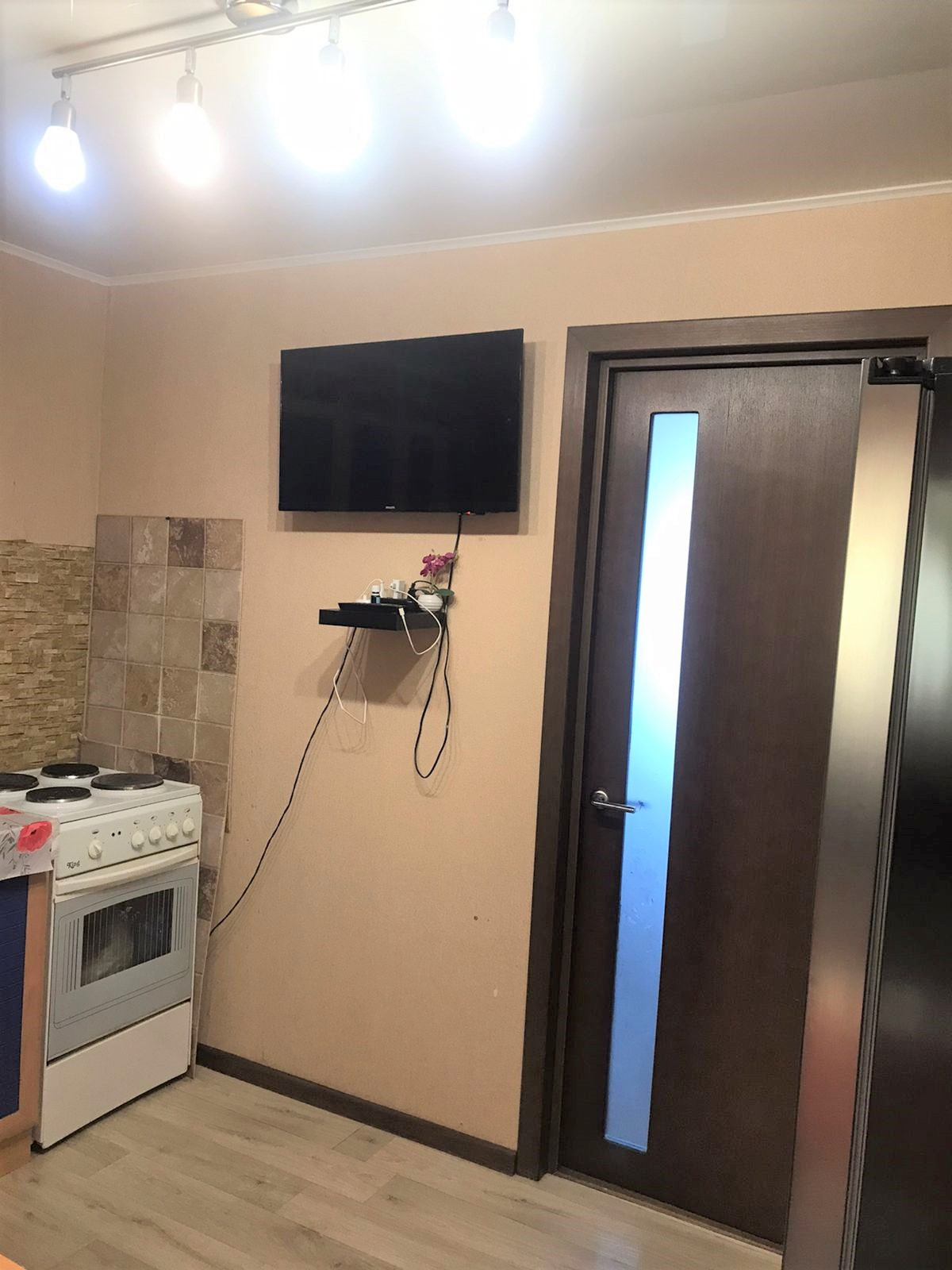 Натяжные потолки , свежие обои. Ламинат и ковролин в комнатах. Установлена качественная входная дверь.
