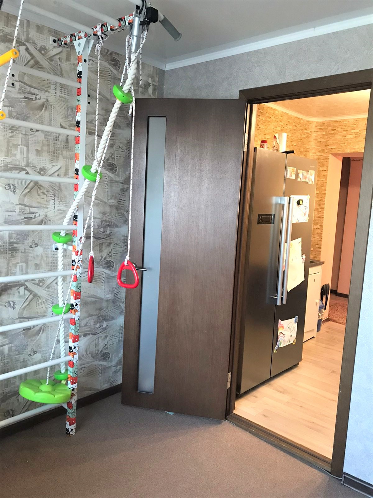 Сделан евро ремонт, есть коридор-прихожая  между комнатами .
