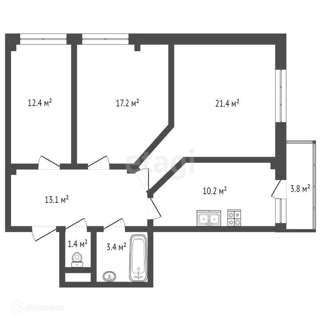 Общая площадь 99.6 м2