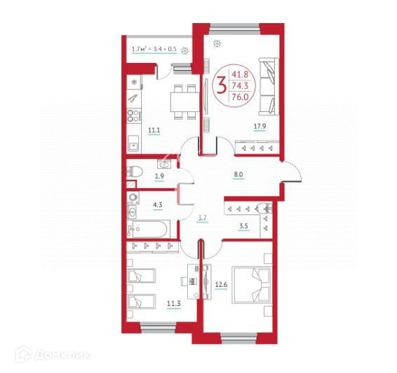 Общая площадь 76 м2