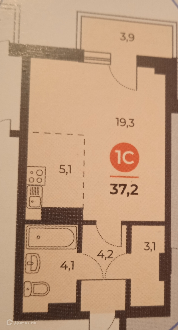Общая площадь 37 м2