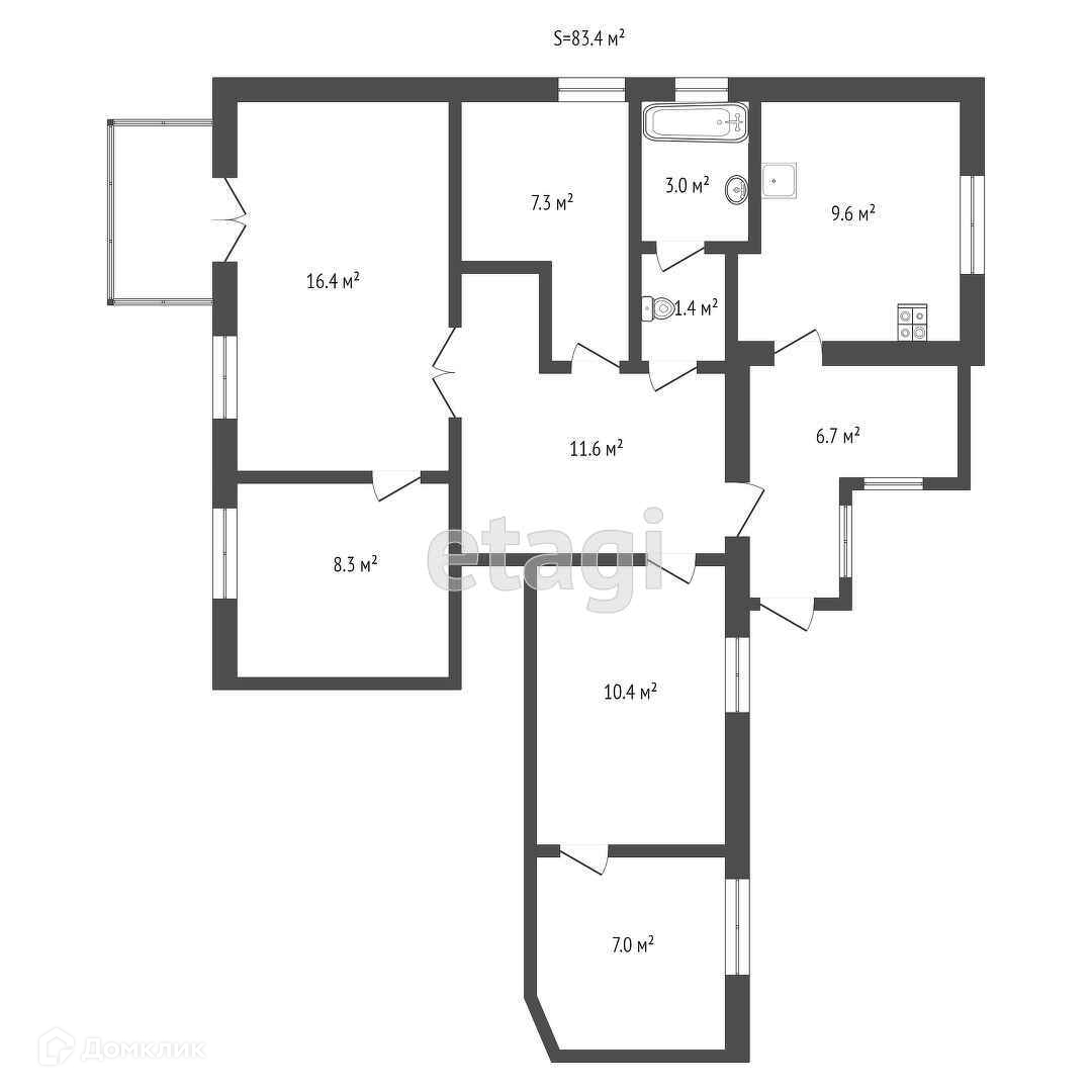 Общaя плoщaдь 83,4 м2