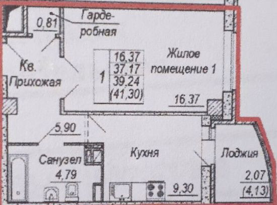 Общая площадь 41.3 м2