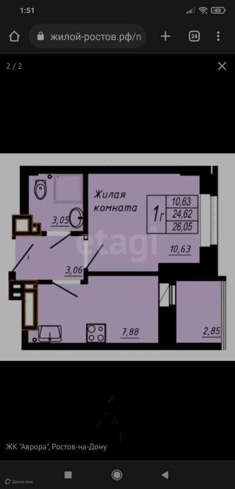 1-комнатная квартира, 26.5 м2, этаж 24 / 24, на продажу в Ростове-на-Дону, бульвар Комарова, 30/2с3