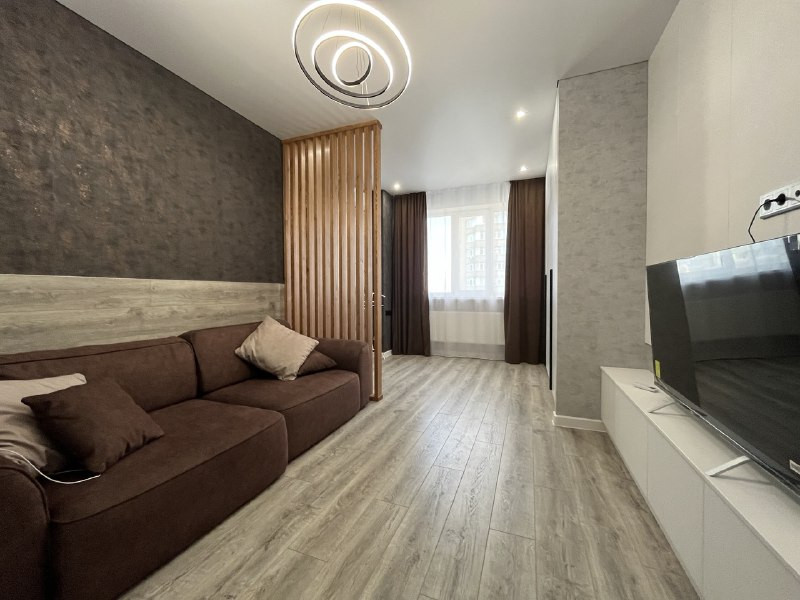В квартире выполнен качественный евроремонт. В комнате выделена зона спальни. Оснащена всей необходимой мебелью и техникой .