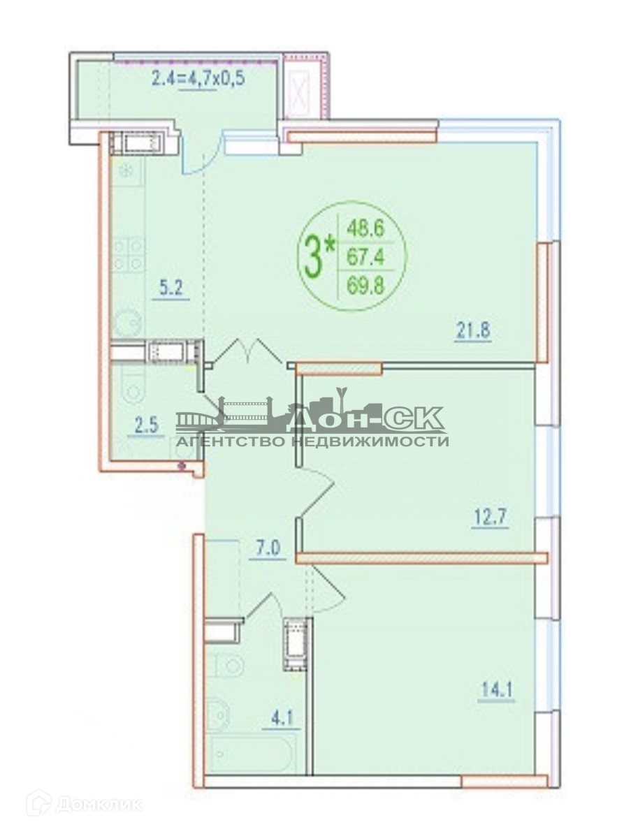 Общая площадь 69.8 м2