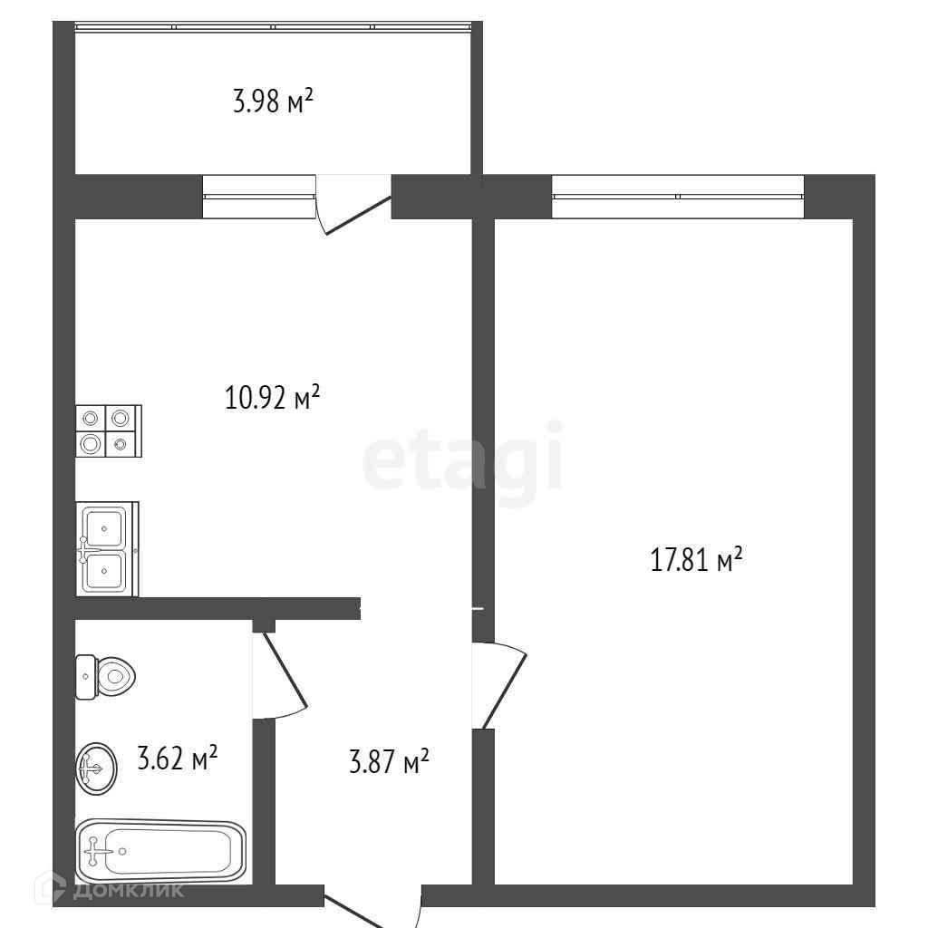 Балкон, лоджия 1 балкон