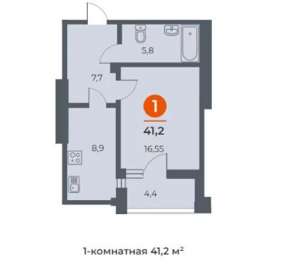 Общая площадь 41.2 м2