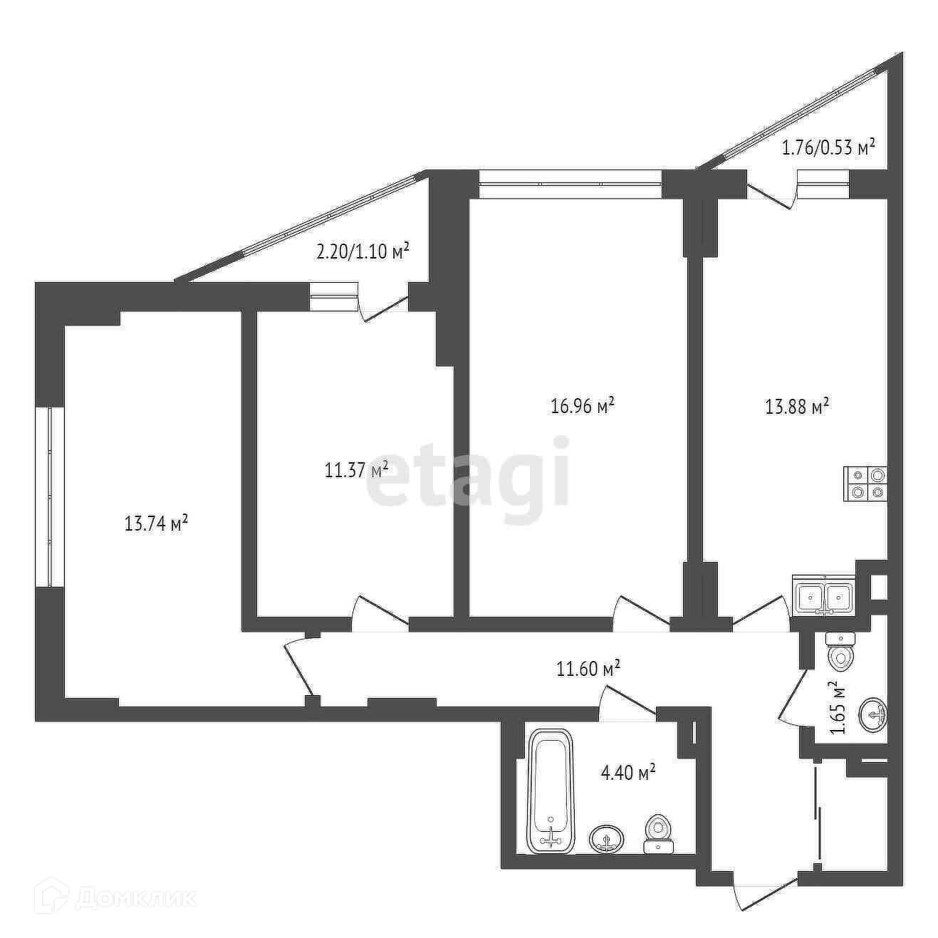 Общая площадь 75 м2