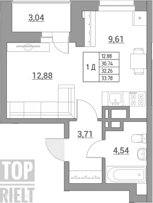 Общая площадь 33.8 м2