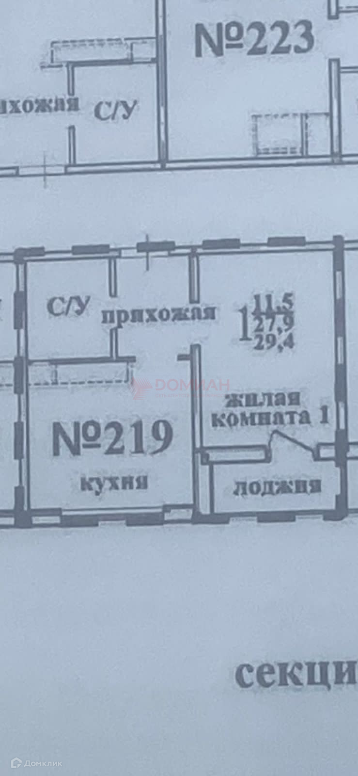 Общая площадь 29.4 м2