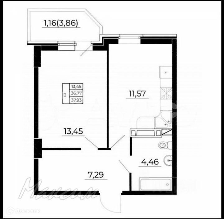 Общая площадь 38 м2