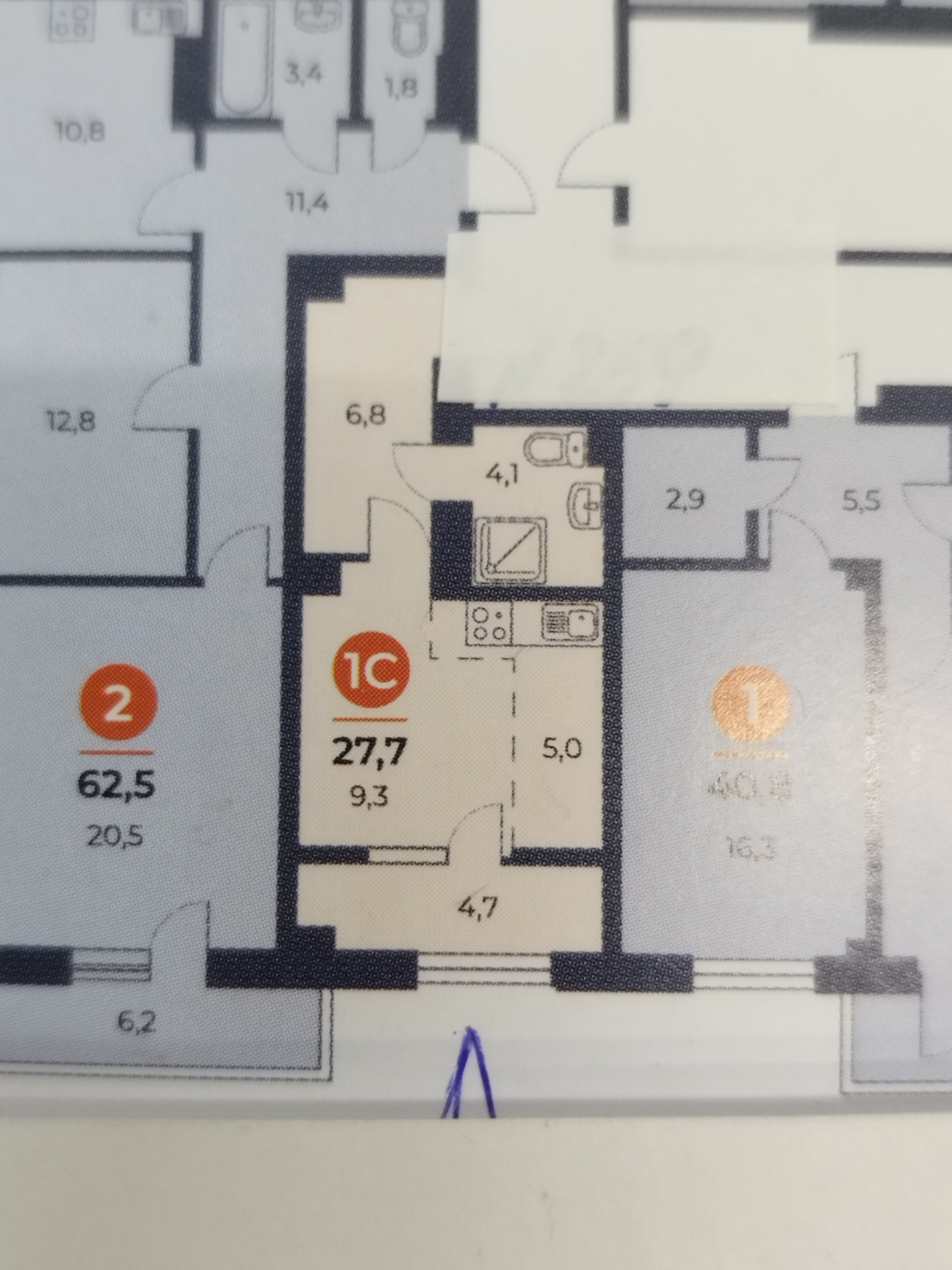 Квартира находится на 3 эт. Общая площадь 27,7м2, лоджия застеклена 4,7м2, совмещенный санузел 4,1м2. комната правильной квадратной формы . В прихожей можно установить большой шкаф-купе.