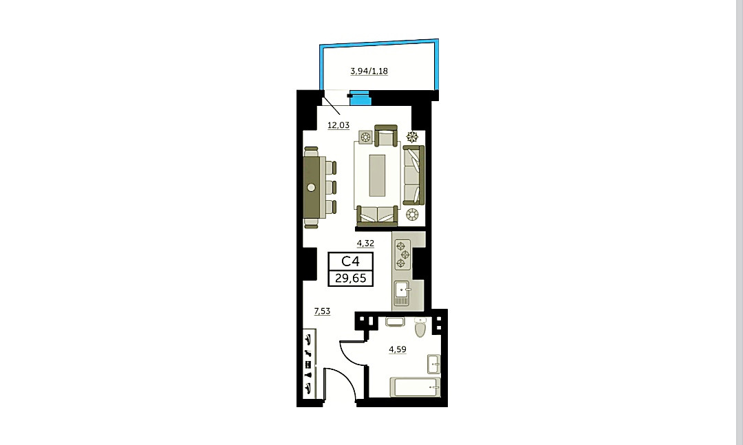 Общая площадь 30 м2