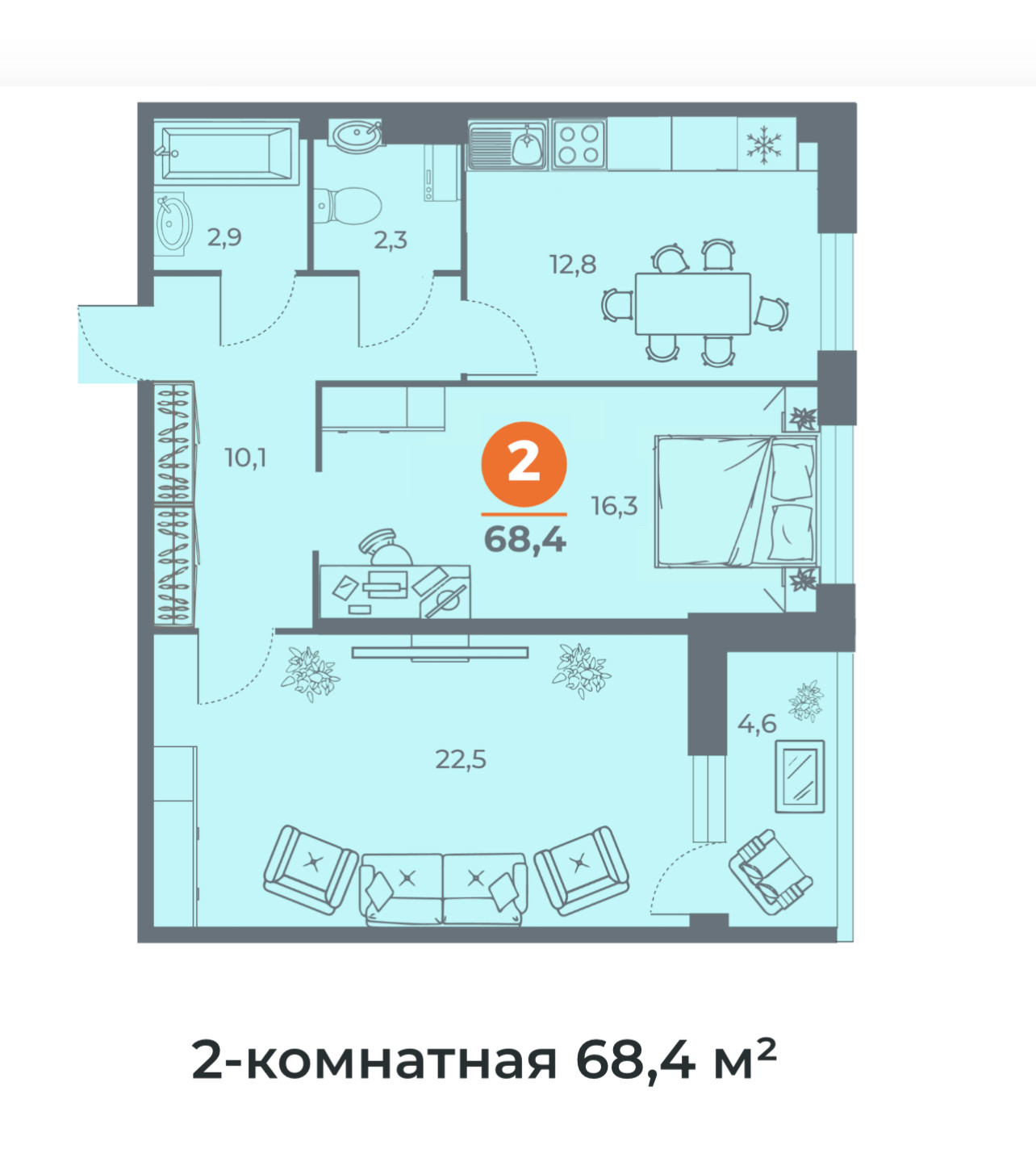 Общая площадь 68.4 м2