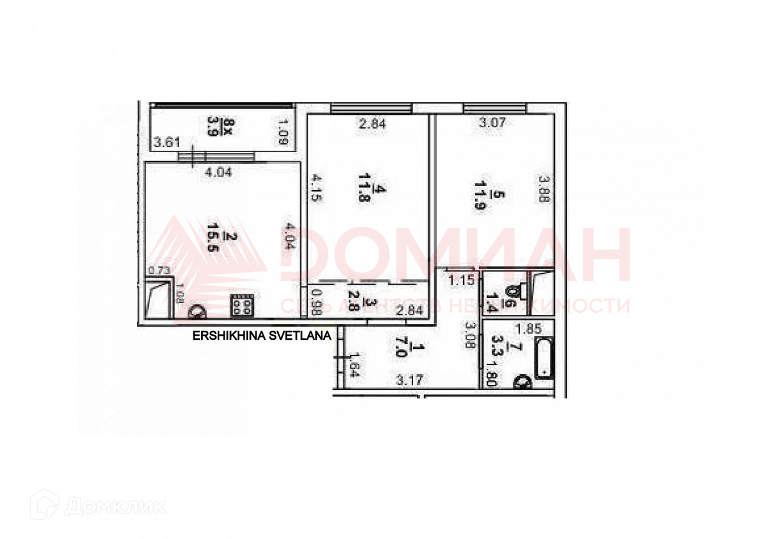 Общая площадь 58 м2