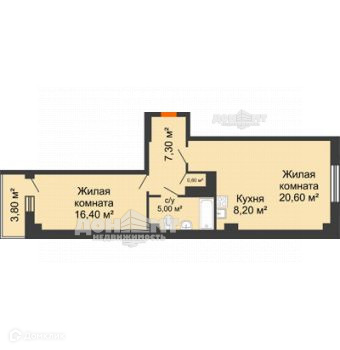 Общая площадь 59.4 м2