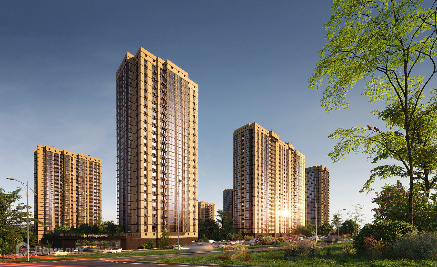 Зелёный оазис гармонично сочетающий в себе экологическую и урбанистическую концепции. Современные технологии в комбинации с природными решениями.Акцент на благоустройство и озеленение – множество деревьев на территории, беседки, зоны отдыха позволят снизить стресс и зарядиться энергией.