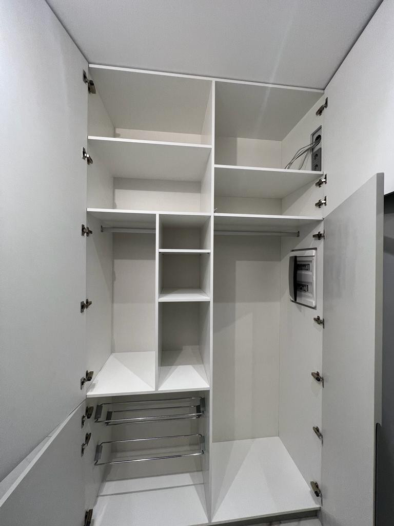 Санузел совместный, с большой душевой, раковиной, подвесным унитазом, полотенцесушителем. Спальня 15 м2 - с кроватью 160•200 см, большой шкаф для хранения вещей, прикроватные тумбы. Регулируемые теплые полы в санузле и на кухне. Индивидуальное отопление. Проведён скоростной интернет. В прихожей большой шкаф, оборудованный системами хранения (полки, ящики, штанги).Напольное покрытие - паркетная доска + испанская плитка.