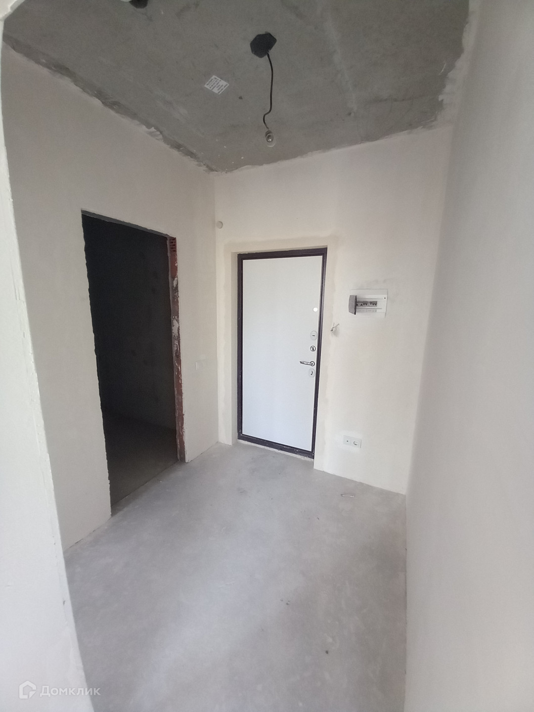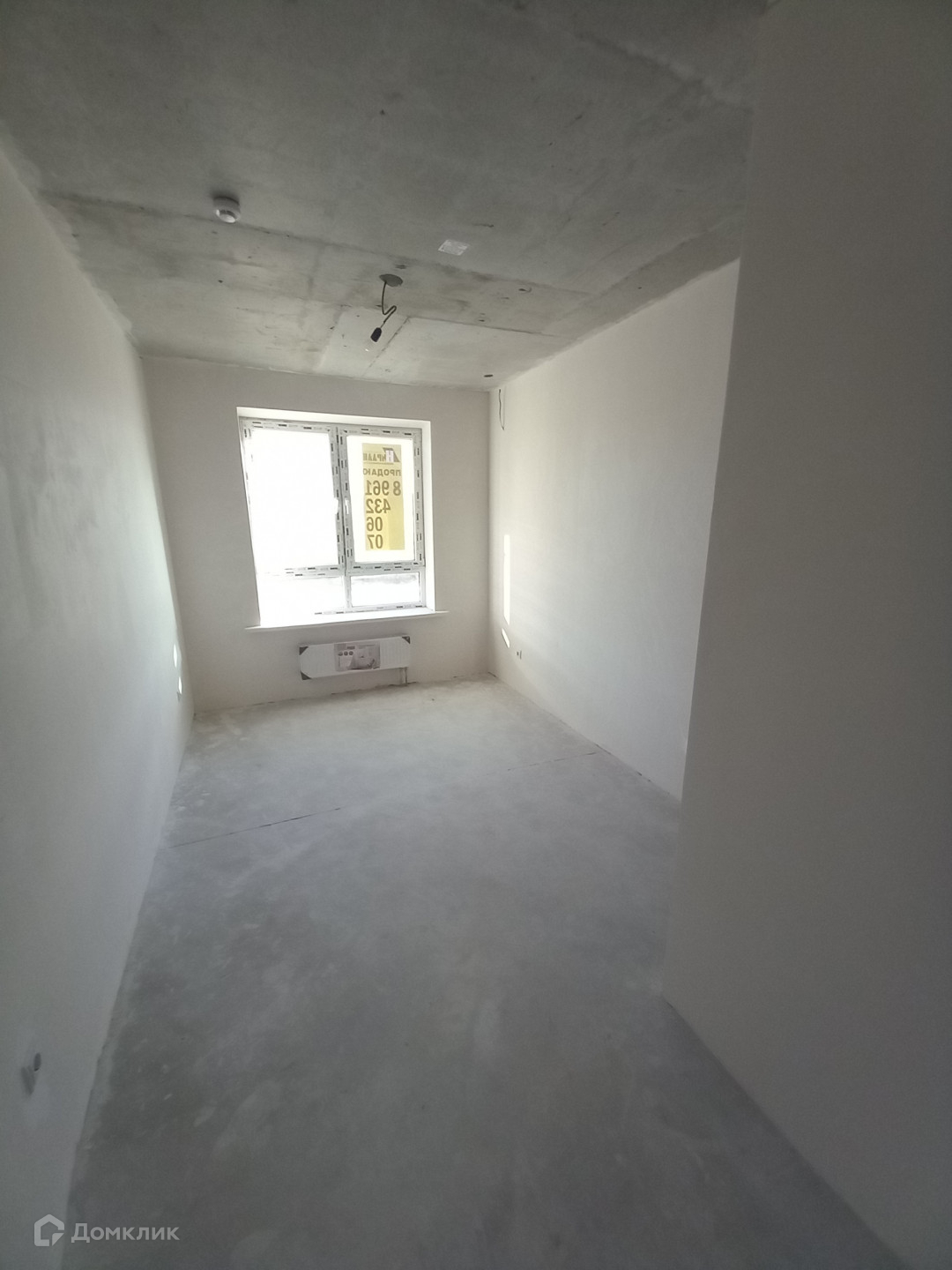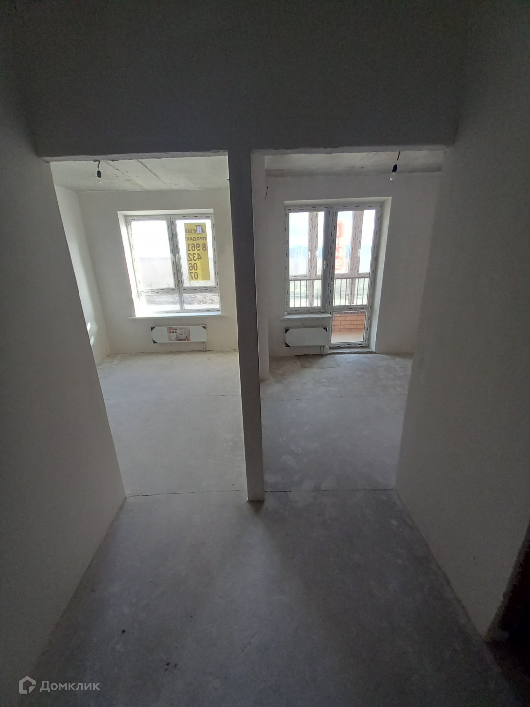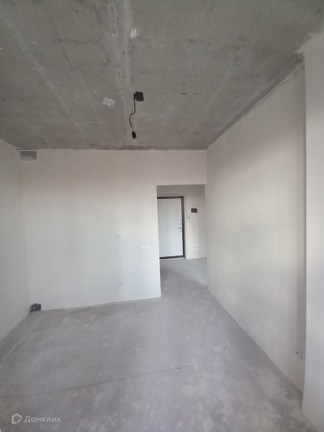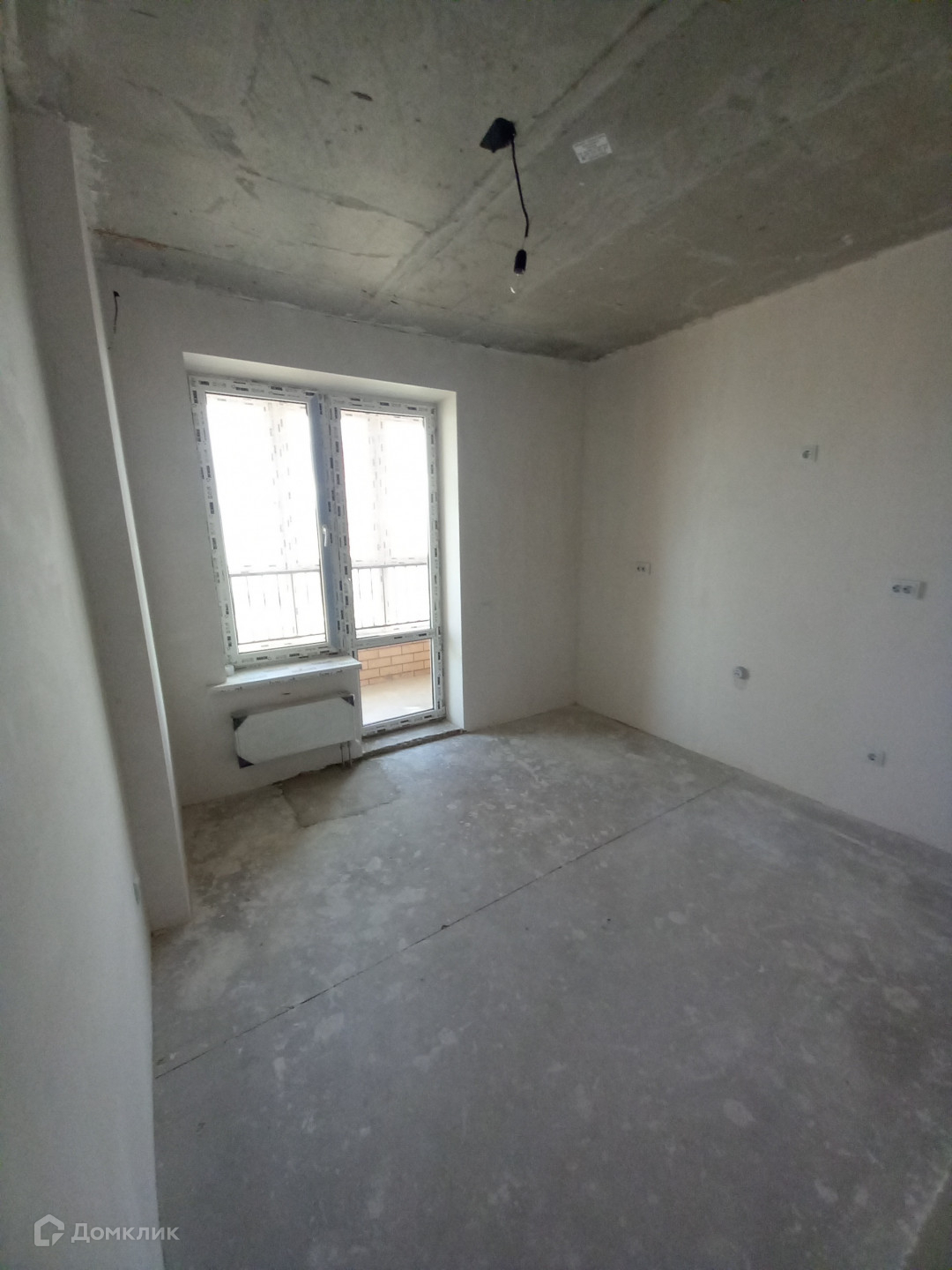 Разводка электрики, стены отштукатурены, коммуникации заведены, балкон застеклен.