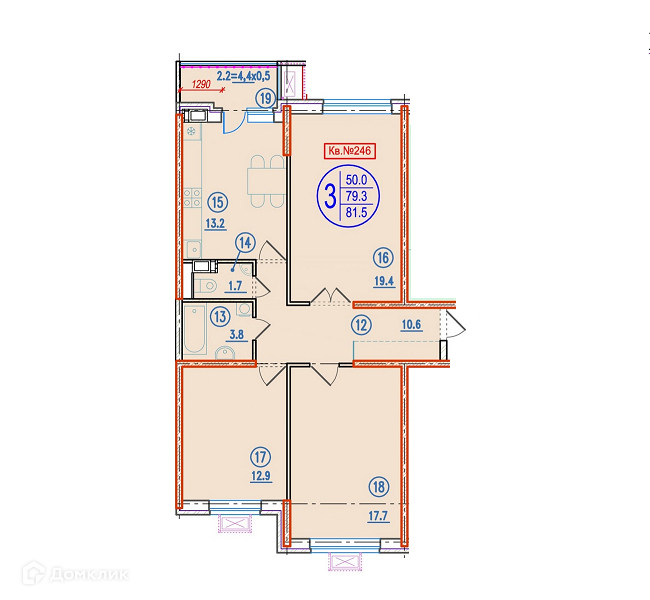 , Ростов-На-Дону г, Ленинский, улица Мечникова 110с2, 3 комн., общ. пл. 81.5 кв.м., жил.пл. 51 кв.м., кухня 13.2 кв.м., 10/21 этаж, санузел раздельный, лоджия, частичная отделка, Номер лота: 4115001