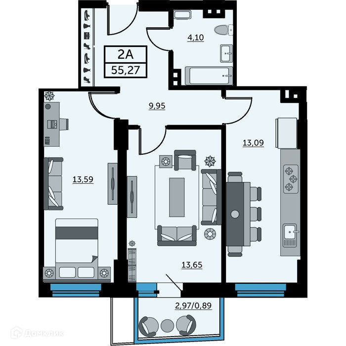 Общая площадь 55 м2